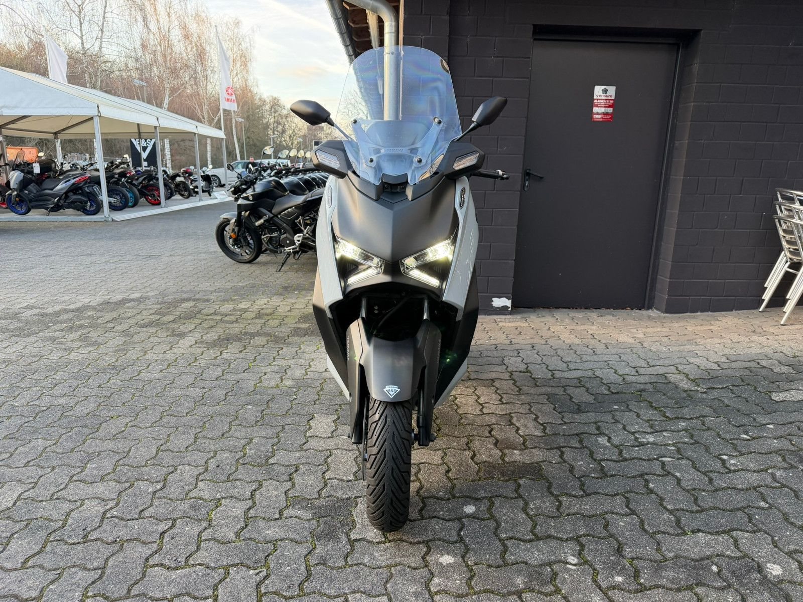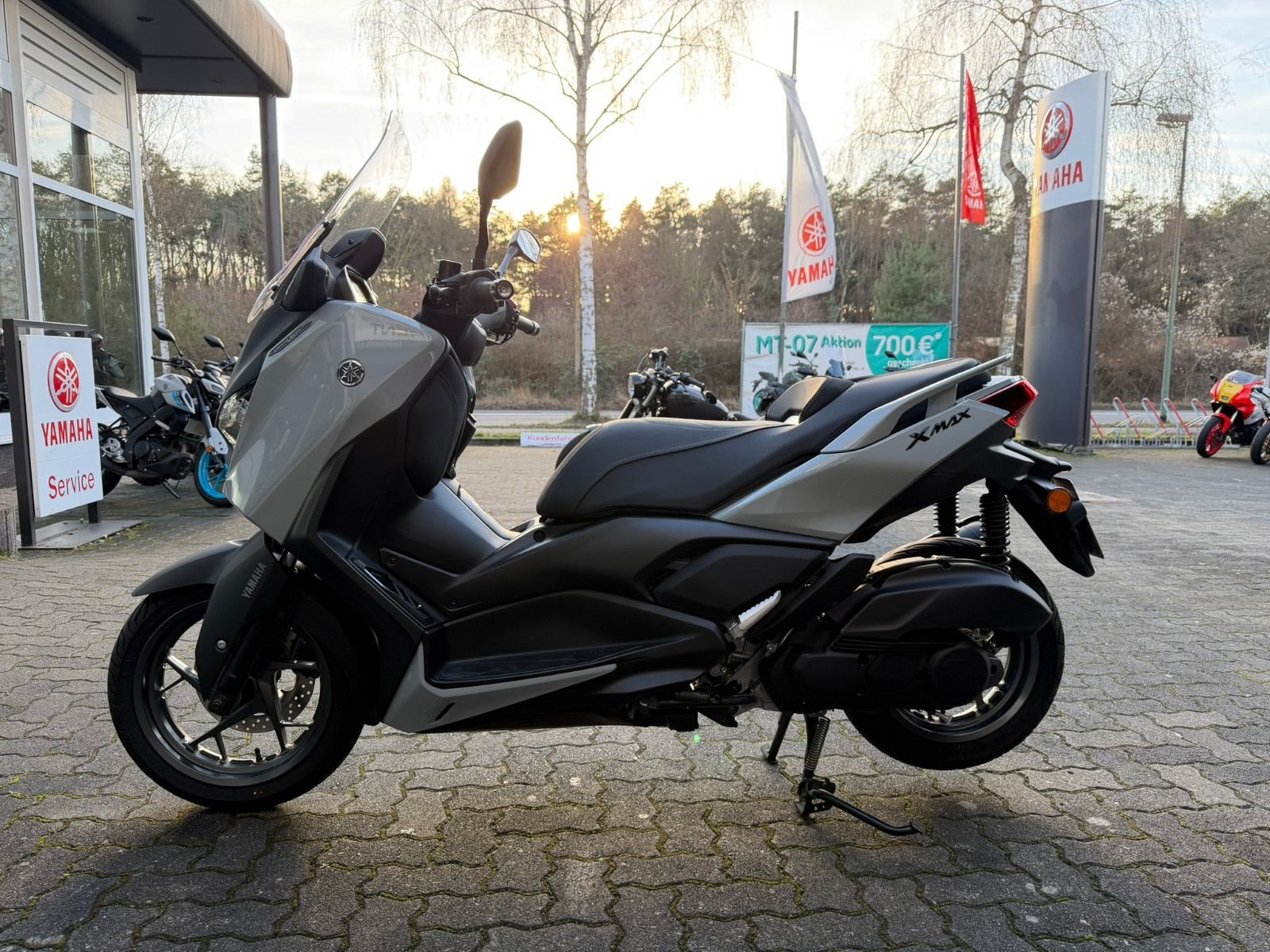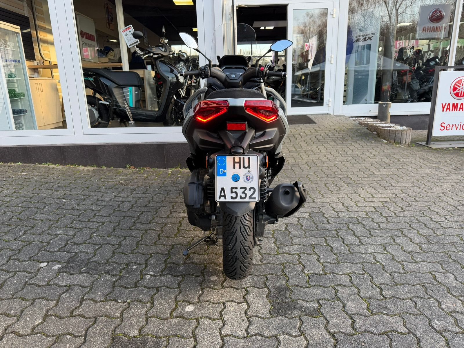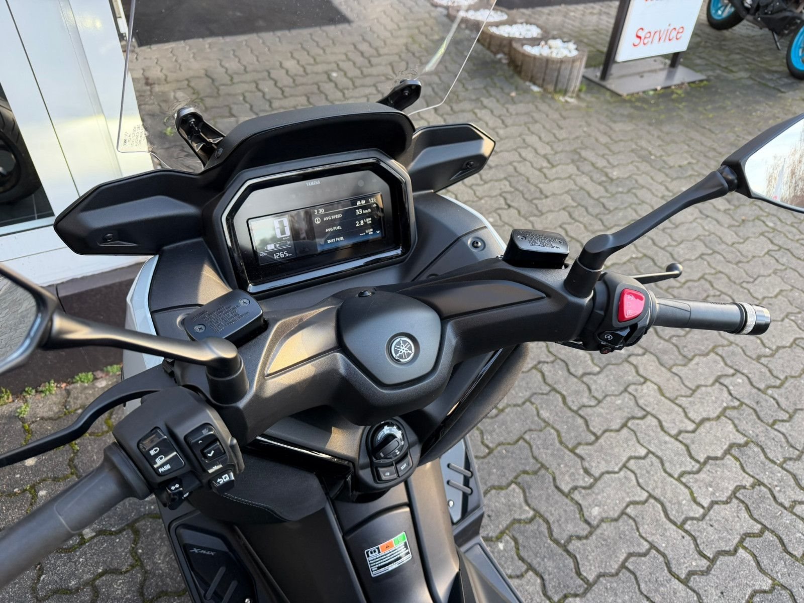 Zu seiner High-End-Ausstattung gehört eine elektrisch einstellbare Verkleidungsscheibe für einen ultimativen Windschutz. Das TFT-Cockpit bietet volle Konnektivität, sodass Du über dein Smartphone auf die kostenlose Garmin-Navigation? zugreifen und Anrufe, Nachrichten, Musik und vieles mehr abrufen kannst. Spezielle Tech MAX Farben mit exklusiven Verkleidungsmerkmalen unterstreichen das High-End-Image zusätzlich. (? Die Navigations-App ist in manchen Ländern nicht erhältlich. Informationen zu Tempolimits, Verkehrslage usw. werden in einigen Ländern und Regionen nicht bereitgestellt. Außerdem werden Daten zu Geschwindigkeitsbegrenzungen möglicherweise nicht zeitnah aktualisiert, und Geschwindigkeitsbegrenzungen können sich je nach Tageszeit ändern, z. B. in der Nähe von Schulen oder Baustellen.)Die dynamische Sportverkleidung mit Voll-LED-Beleuchtung sorgt dafür, dass der XMAX 125 Tech MAX+ aus der Masse heraussticht. Sein gutes Aussehen wird durch funktionale Merkmale wie den Stauraum für zwei Helme? unter der Sitzbank, einen kraftstoffsparenden Start-Stopp-System, eine schlüssellose Bedienung per Smart Key und eine USB Typ C-Buchse ergänzt. (?Abhängig von ihrer Größe und Form.)