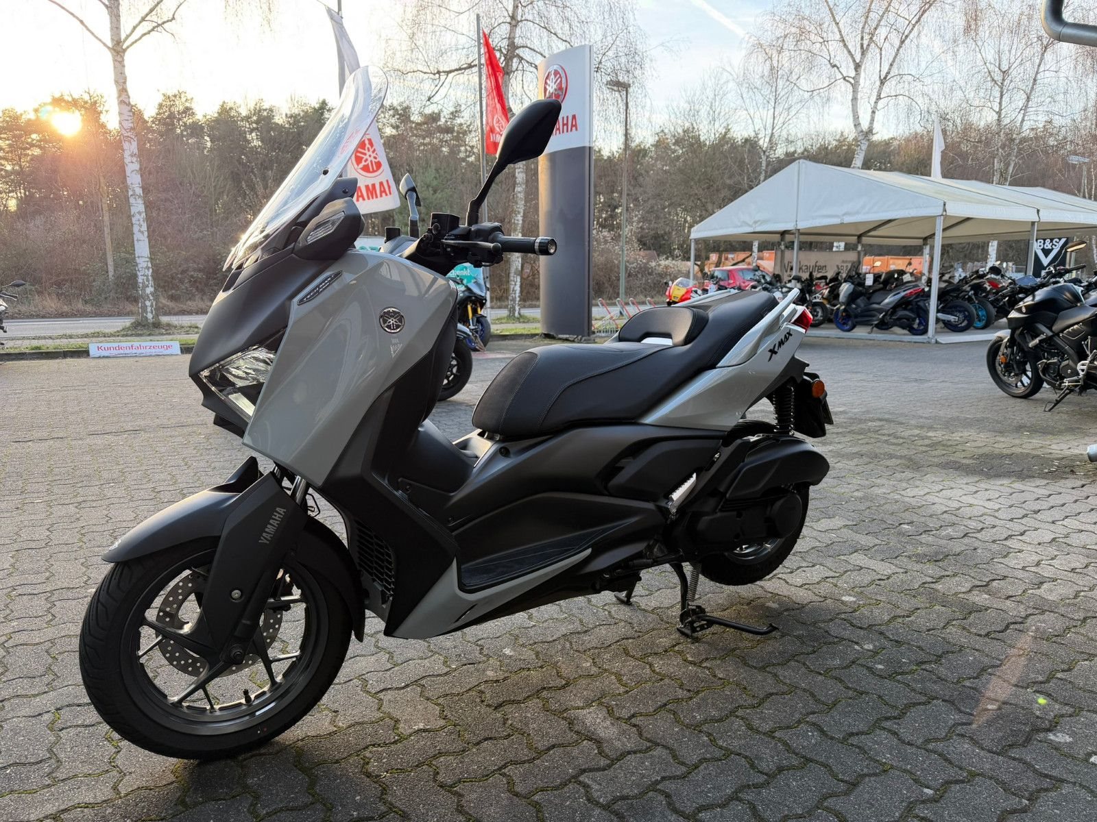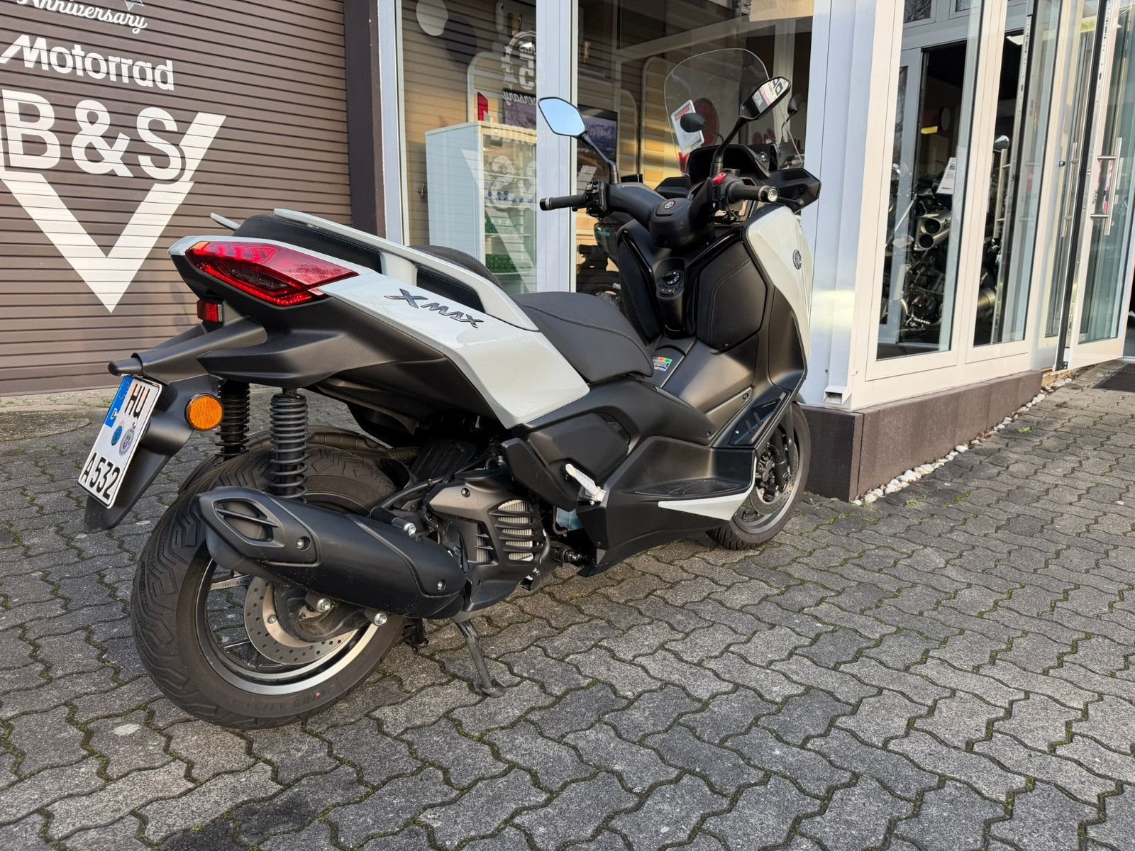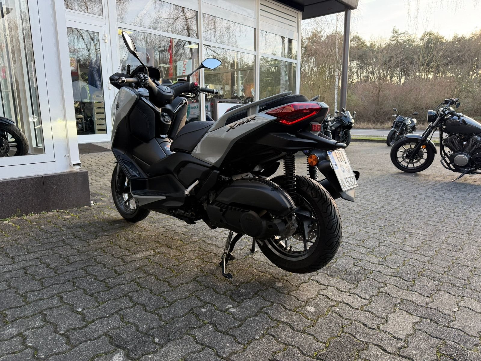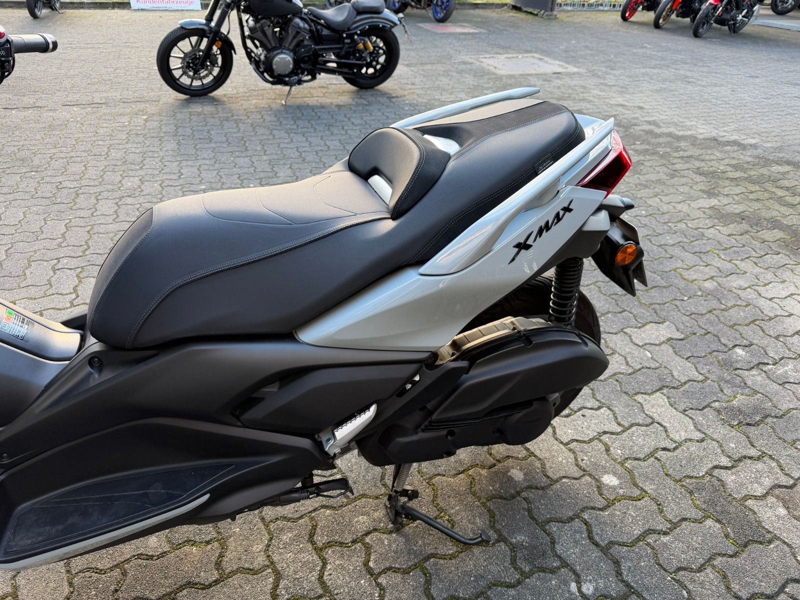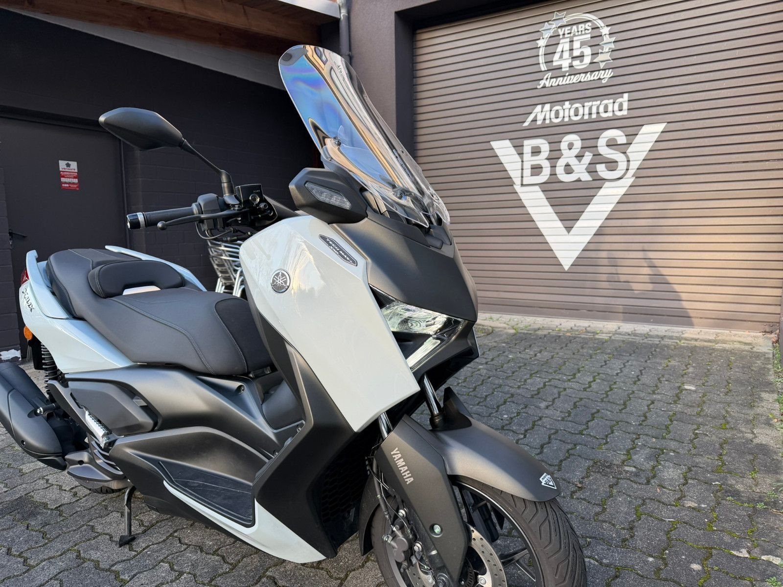 Zu seiner High-End-Ausstattung gehört eine elektrisch einstellbare Verkleidungsscheibe für einen ultimativen Windschutz. Das TFT-Cockpit bietet volle Konnektivität, sodass Du über dein Smartphone auf die kostenlose Garmin-Navigation? zugreifen und Anrufe, Nachrichten, Musik und vieles mehr abrufen kannst. Spezielle Tech MAX Farben mit exklusiven Verkleidungsmerkmalen unterstreichen das High-End-Image zusätzlich. (? Die Navigations-App ist in manchen Ländern nicht erhältlich. Informationen zu Tempolimits, Verkehrslage usw. werden in einigen Ländern und Regionen nicht bereitgestellt. Außerdem werden Daten zu Geschwindigkeitsbegrenzungen möglicherweise nicht zeitnah aktualisiert, und Geschwindigkeitsbegrenzungen können sich je nach Tageszeit ändern, z. B. in der Nähe von Schulen oder Baustellen.)Die dynamische Sportverkleidung mit Voll-LED-Beleuchtung sorgt dafür, dass der XMAX 125 Tech MAX+ aus der Masse heraussticht. Sein gutes Aussehen wird durch funktionale Merkmale wie den Stauraum für zwei Helme? unter der Sitzbank, einen kraftstoffsparenden Start-Stopp-System, eine schlüssellose Bedienung per Smart Key und eine USB Typ C-Buchse ergänzt. (?Abhängig von ihrer Größe und Form.)