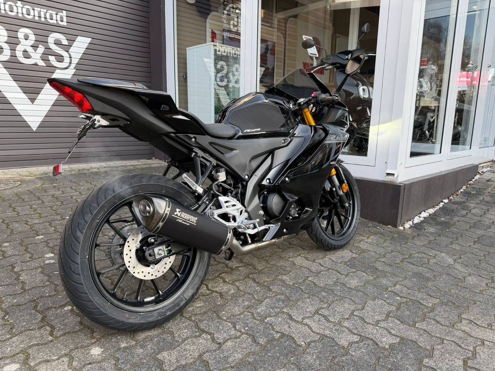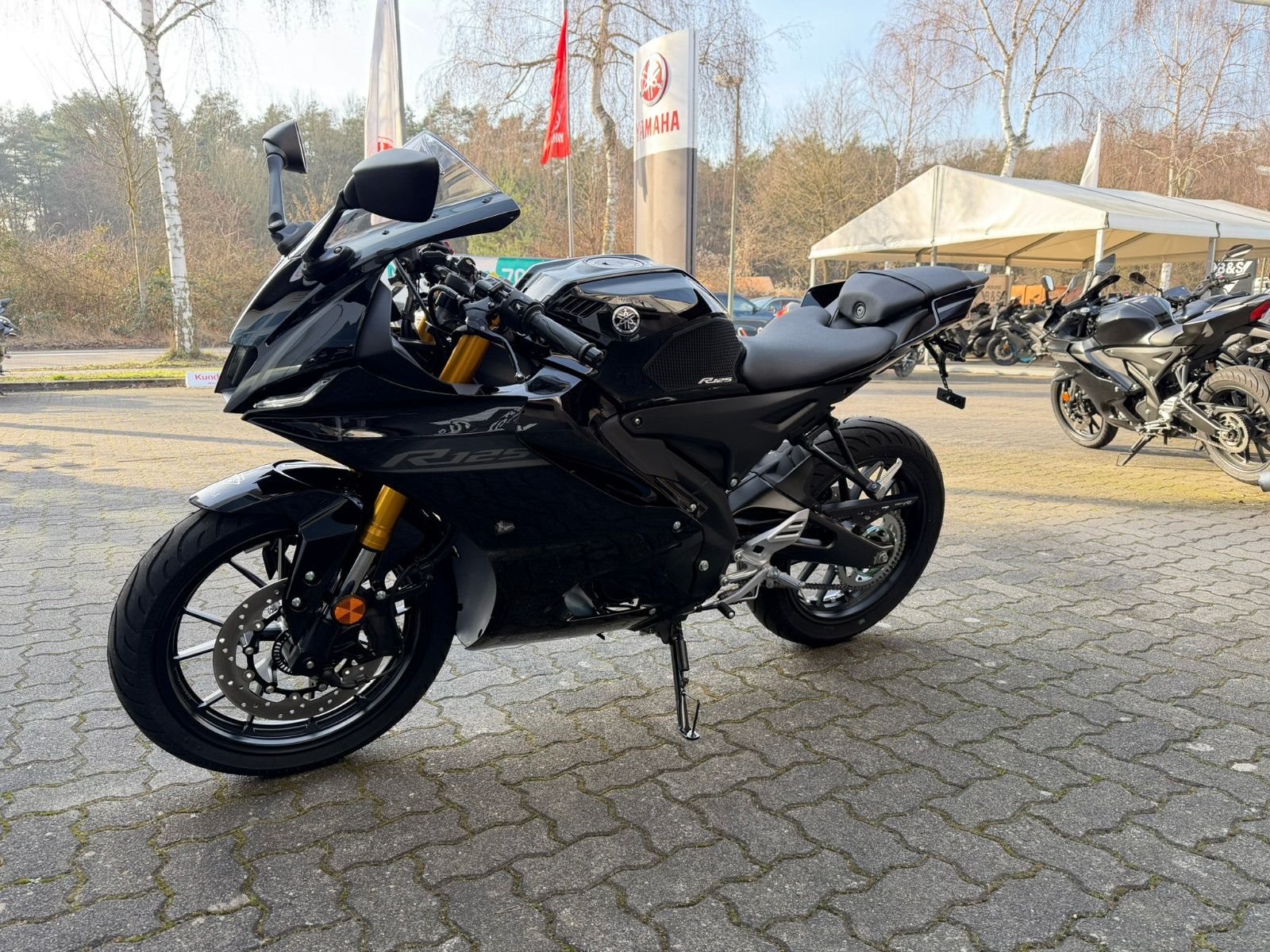 Der Deltabox-Rahmen hat eine für den Rennsport entwickelte Supersport-Geometrie und eine hochmoderne 41 mm KYB Upside-Down-Gabel sowie eine angelenkte Hinterradfederung für ein superagiles Handling. Die Anordnung der Fußrasten, der Sitzbank und des Lenkers sorgen für eine sportliche Sitzposition und für eine optimale Kontrolle. Und mit dem 5 Zoll großen TFT-Cockpit mit Smartphone-Konnektivität bleibst Du stets informiert und in Verbindung. Mit einem leistungsstarken, zentral angeordneten LED-Scheinwerfer, zwei LED-Positionsleuchten und der M-förmigen Nase spiegelt das aggressive, neue Gesicht die reine DNA der R-Serie wider.Für eine starke Leistung in allen Drehzahlbereichen ist der 125 cm Viertaktmotor mit Yamahas leistungssteigernder variabler Ventilsteuerung (VVA) und einem überarbeiteten Auspuff ausgestattet. Die Traktionskontrolle sowie die Anti-Hopping-Kupplung verbessern die Beherrschbarkeit beim Beschleunigen und Bremsen. Mit einem Premium-Finish in den neuen Graphics der nächsten Generation - zur Auswahl stehen die Farbschemata Icon Blue, Tech Black oder 70th Anniversary in Weiß und Rot - lässt dich die R125 mit ihrem neuen Look direkt in die R/World eintauchen.