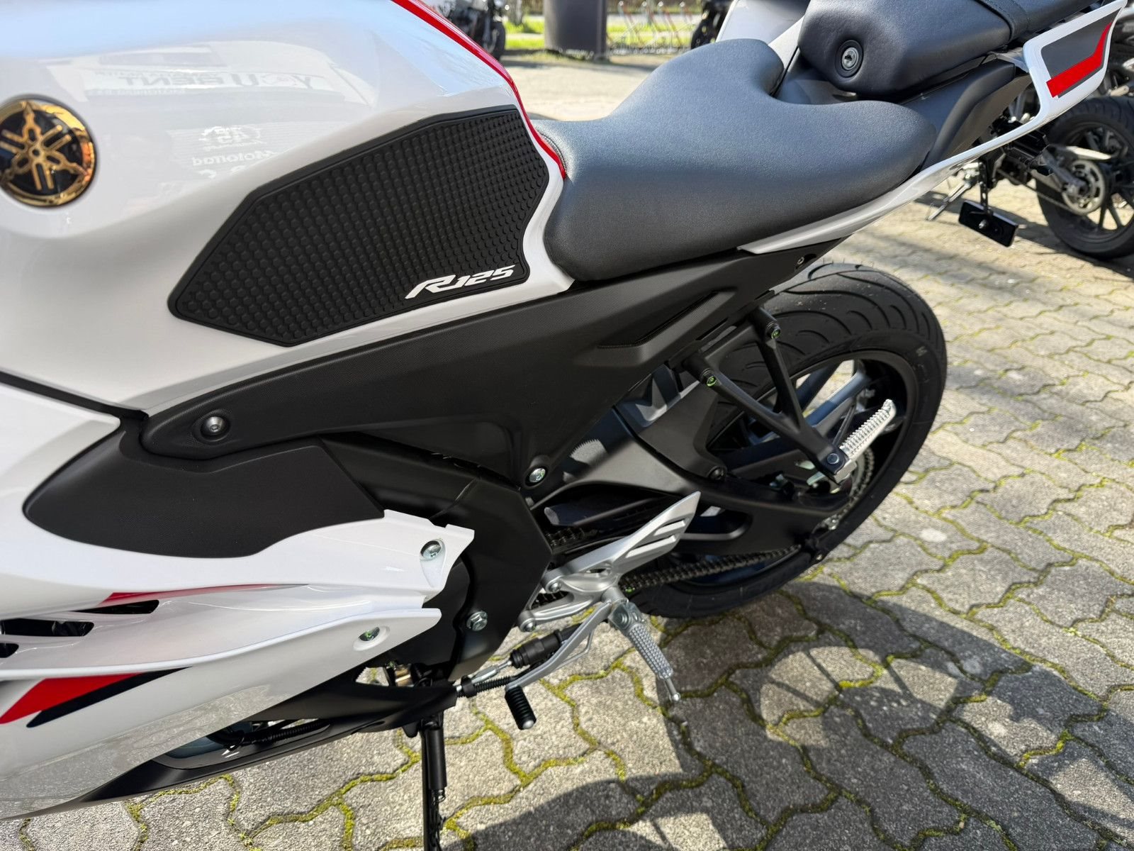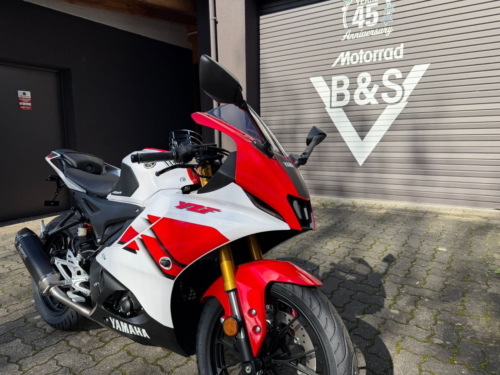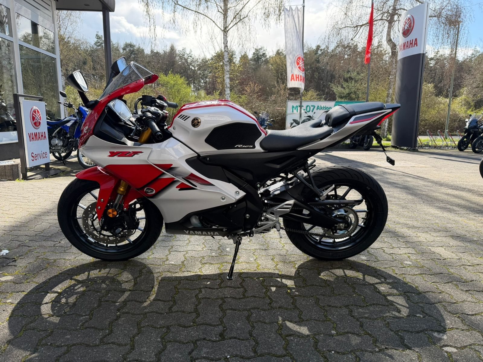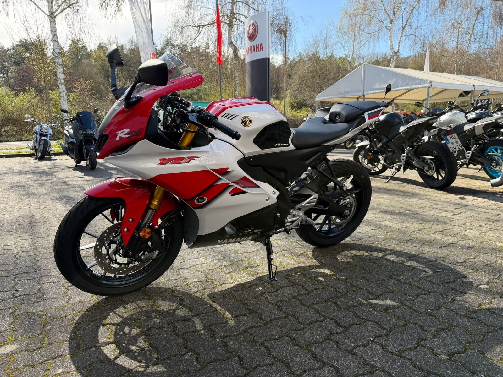 Der Deltabox-Rahmen hat eine für den Rennsport entwickelte Supersport-Geometrie und eine hochmoderne 41 mm KYB Upside-Down-Gabel sowie eine angelenkte Hinterradfederung für ein superagiles Handling. Die Anordnung der Fußrasten, der Sitzbank und des Lenkers sorgen für eine sportliche Sitzposition und für eine optimale Kontrolle. Und mit dem 5 Zoll großen TFT-Cockpit mit Smartphone-Konnektivität bleibst Du stets informiert und in Verbindung. Mit einem leistungsstarken, zentral angeordneten LED-Scheinwerfer, zwei LED-Positionsleuchten und der M-förmigen Nase spiegelt das aggressive, neue Gesicht die reine DNA der R-Serie wider.Für eine starke Leistung in allen Drehzahlbereichen ist der 125 cm Viertaktmotor mit Yamahas leistungssteigernder variabler Ventilsteuerung (VVA) und einem überarbeiteten Auspuff ausgestattet. Die Traktionskontrolle sowie die Anti-Hopping-Kupplung verbessern die Beherrschbarkeit beim Beschleunigen und Bremsen. Mit einem Premium-Finish in den neuen Graphics der nächsten Generation - zur Auswahl stehen die Farbschemata Icon Blue, Tech Black oder 70th Anniversary in Weiß und Rot - lässt dich die R125 mit ihrem neuen Look direkt in die R/World eintauchen.