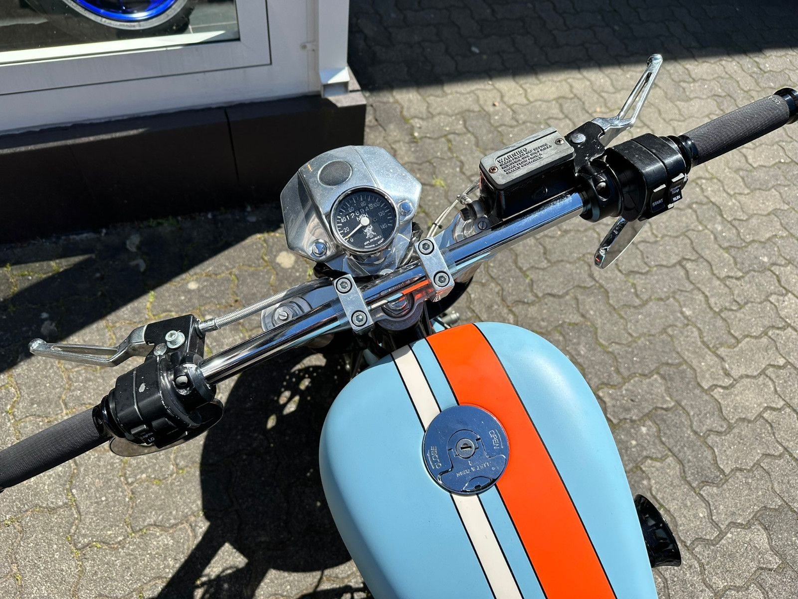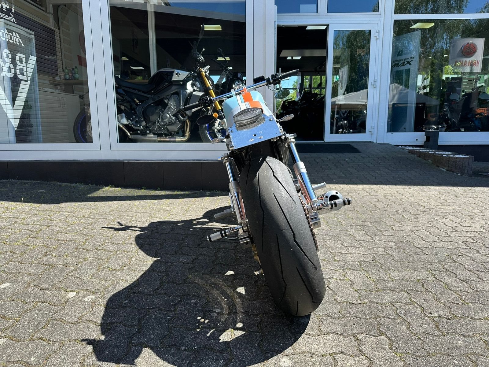 Auspuffanlage Hersteller First Connection, Kennzeichenhalter kurz, Kellermann LED Blinker, Upside-Down Gabel, 4 Kolben Bremszangen vorne, JMC Hinterradschwinge.