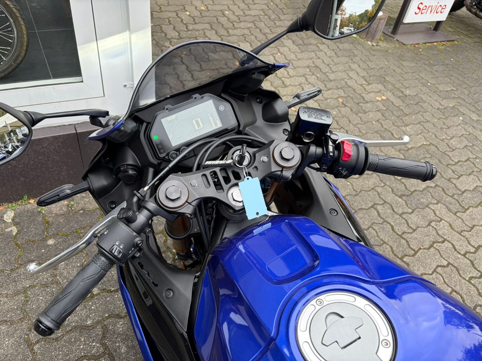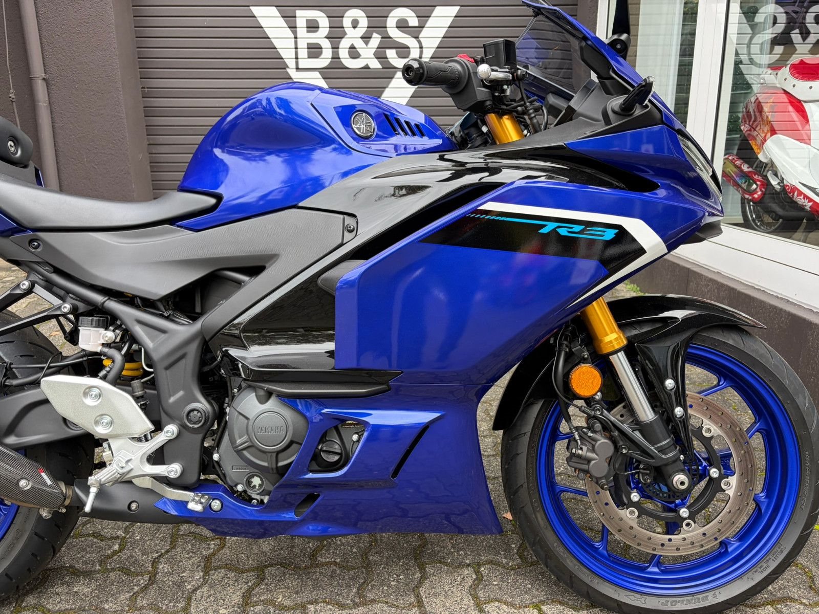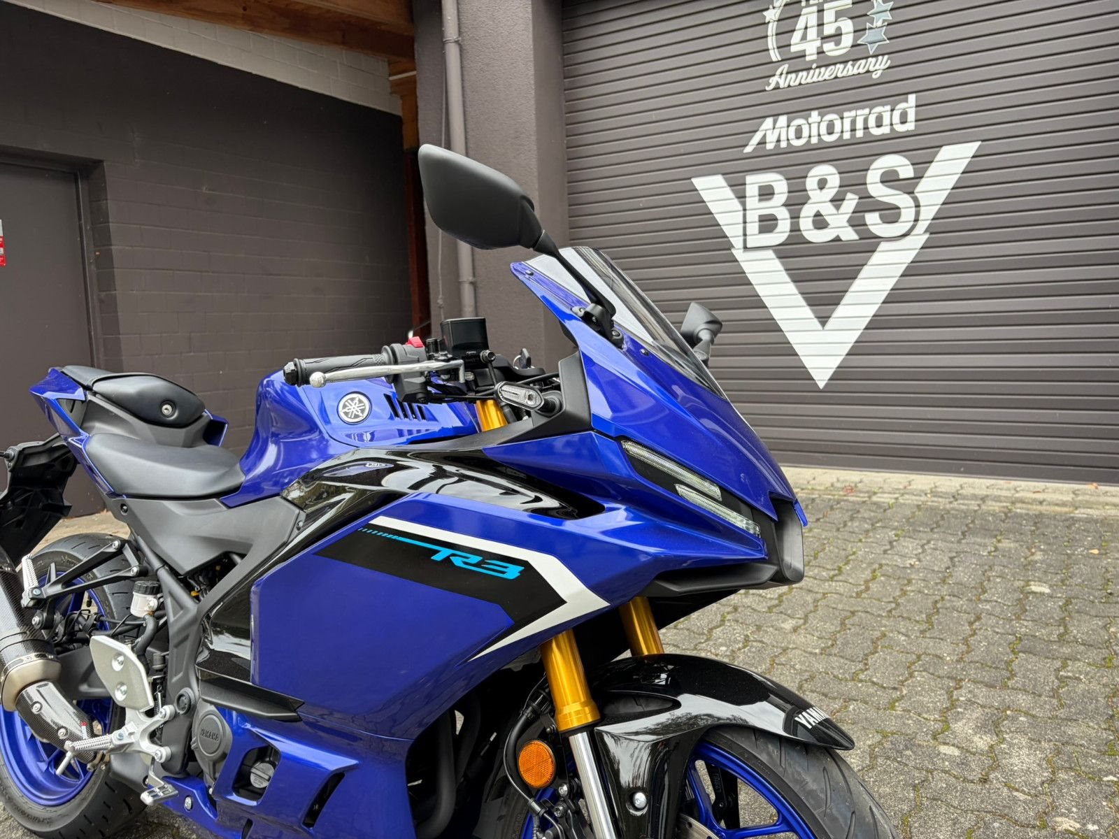 Mit ihrem neuen 2025er Look werden Fans der R-Reihe die neue R3 sofort als waschechten Yamaha-Supersportler erkennen. Das neue Gesicht mit dem integrierten, leistungsstarken Scheinwerfer und Positionsleuchten flankieren den M-DUCT Luftkanal über neuen aerodynamischen Winglets.Das LCD-Multifunktions-Cockpit und die Smartphone-Konnektivität eröffnen zusammen mit der MyRide App eine Welt voller Informationen. Die Upside-Down-Gabel hat einen Standrohr-Durchmesser von 37 mm. Sie bietet ein präzises Federung- und Dämpfungsverhalten. Das schlankere, ergonomische Design erleichtert außerdem das Absetzen der Füße im Stand.