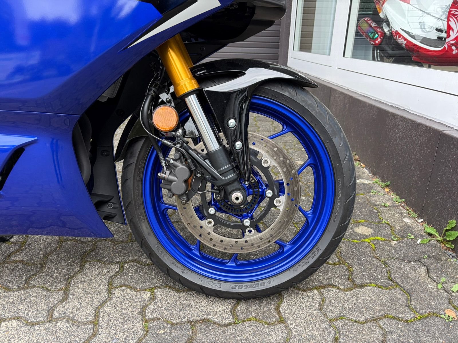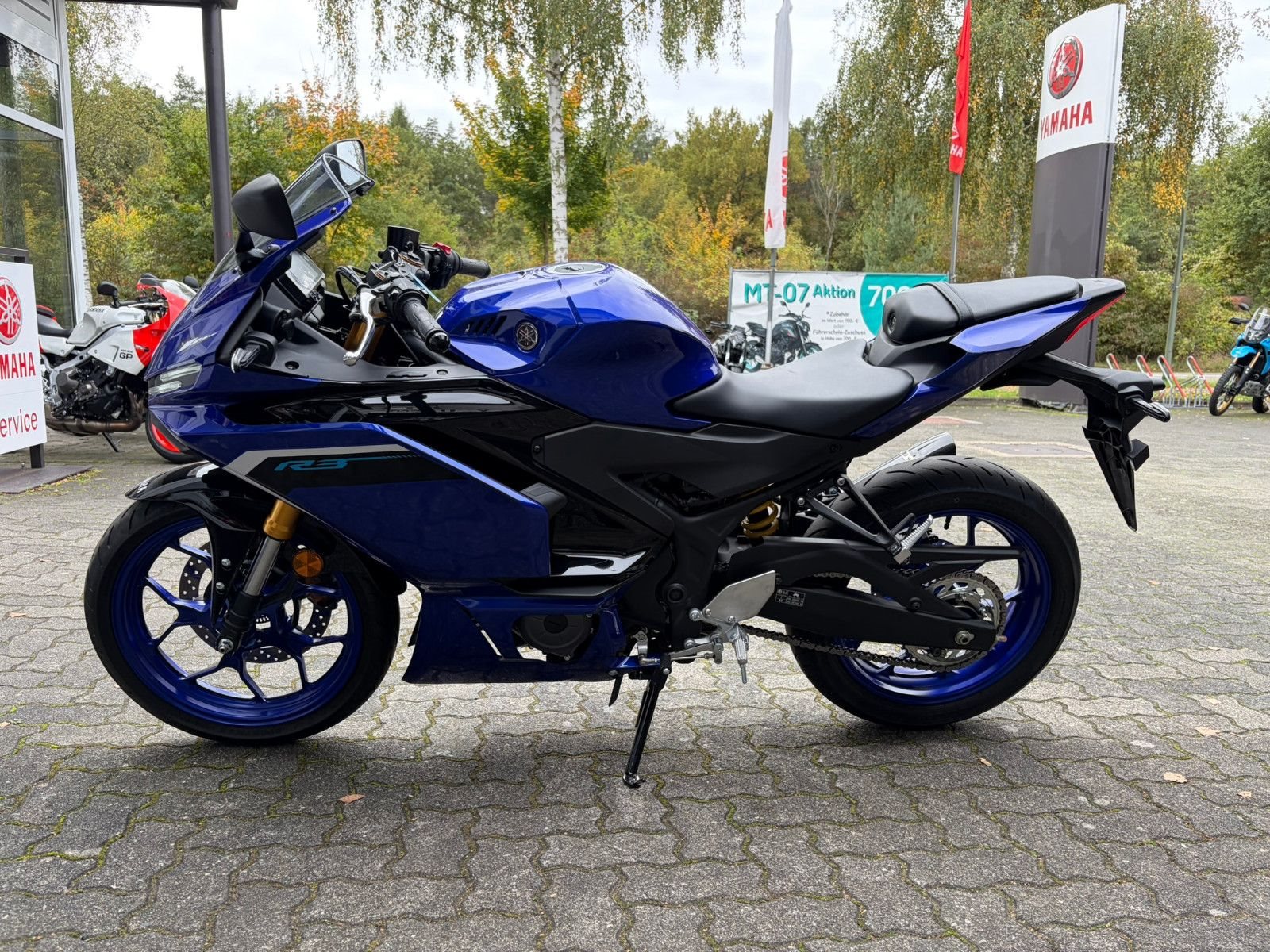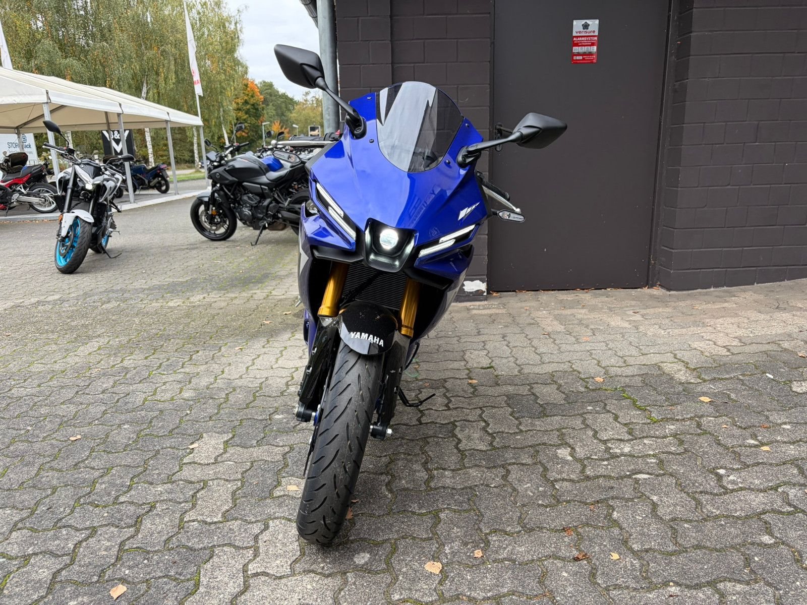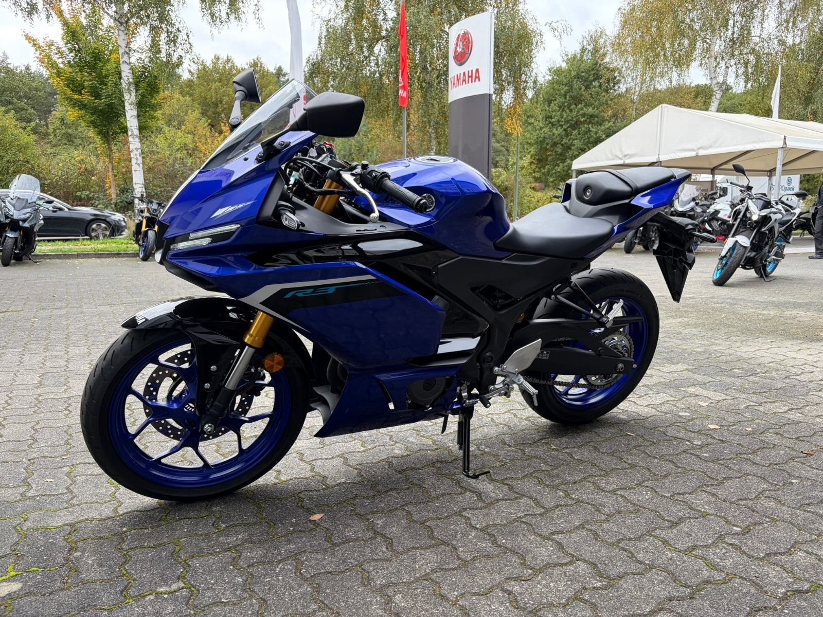 Mit ihrem neuen 2025er Look werden Fans der R-Reihe die neue R3 sofort als waschechten Yamaha-Supersportler erkennen. Das neue Gesicht mit dem integrierten, leistungsstarken Scheinwerfer und Positionsleuchten flankieren den M-DUCT Luftkanal über neuen aerodynamischen Winglets.Das LCD-Multifunktions-Cockpit und die Smartphone-Konnektivität eröffnen zusammen mit der MyRide App eine Welt voller Informationen. Die Upside-Down-Gabel hat einen Standrohr-Durchmesser von 37 mm. Sie bietet ein präzises Federung- und Dämpfungsverhalten. Das schlankere, ergonomische Design erleichtert außerdem das Absetzen der Füße im Stand.