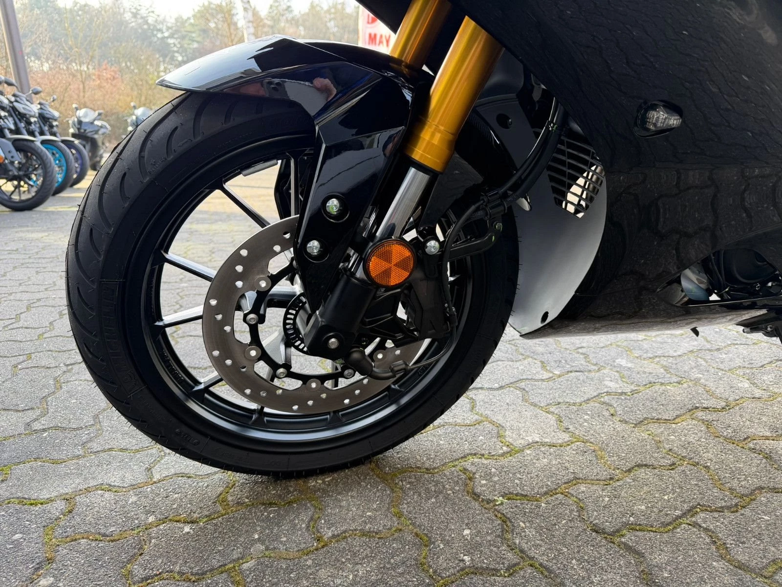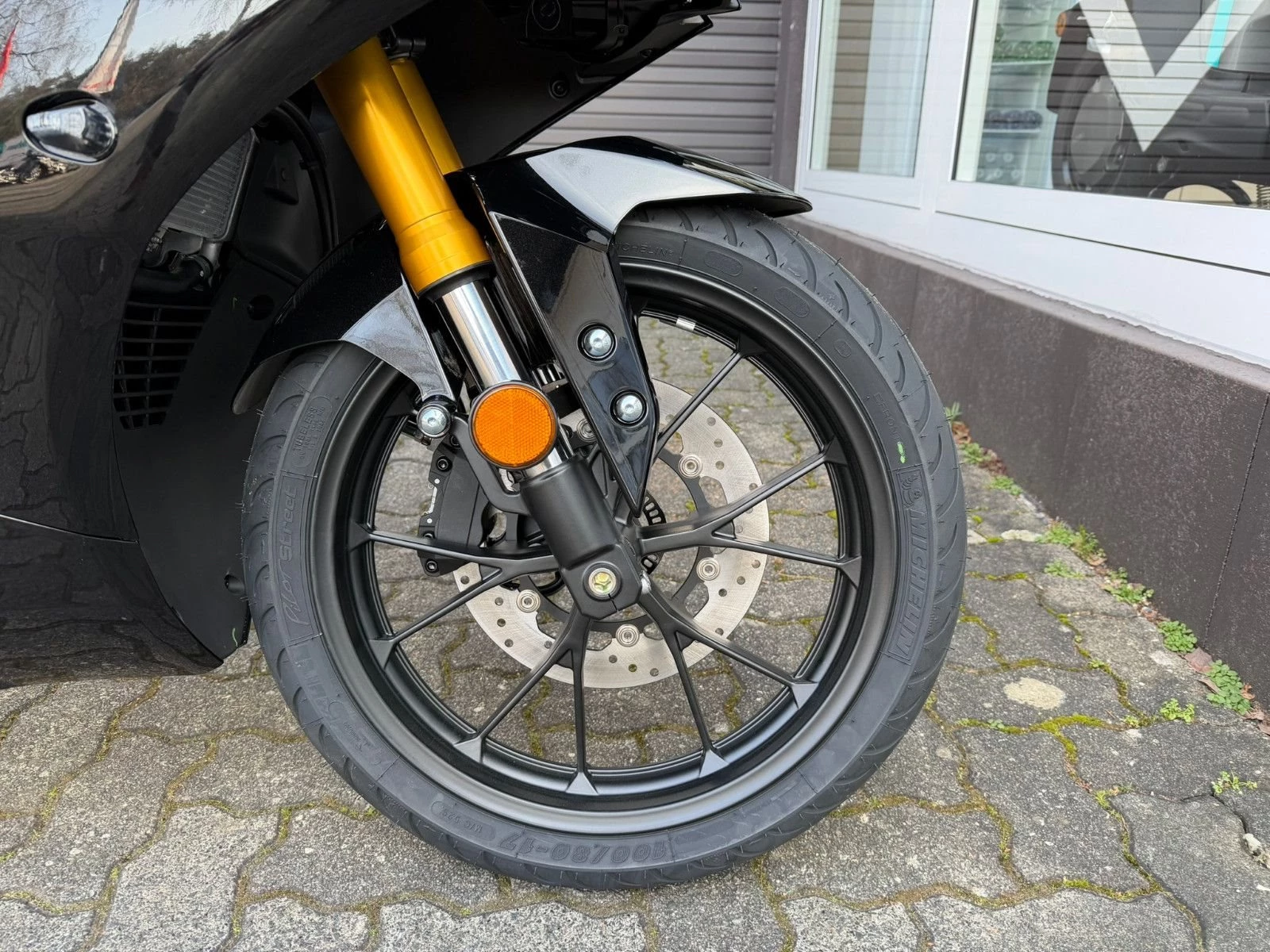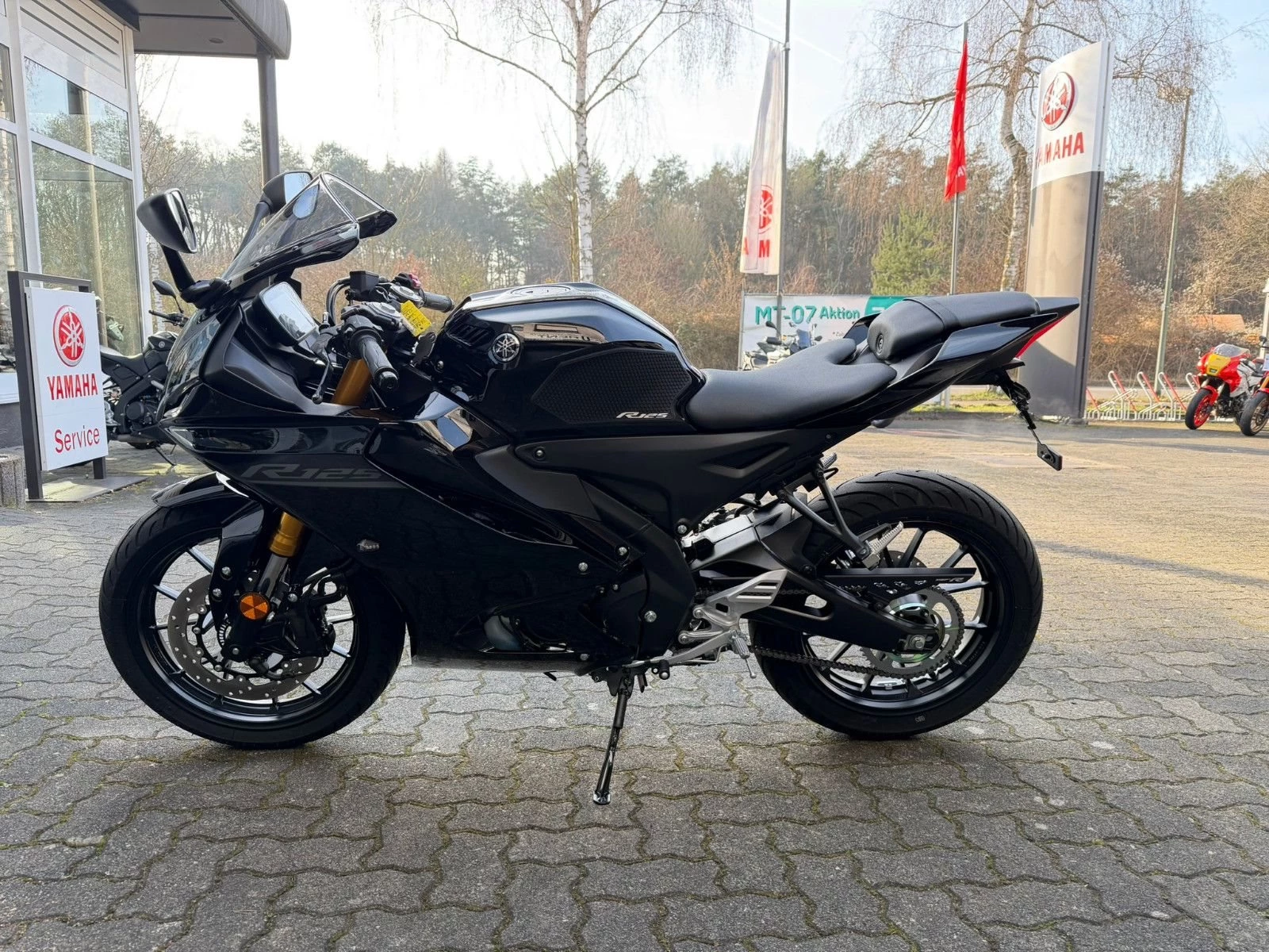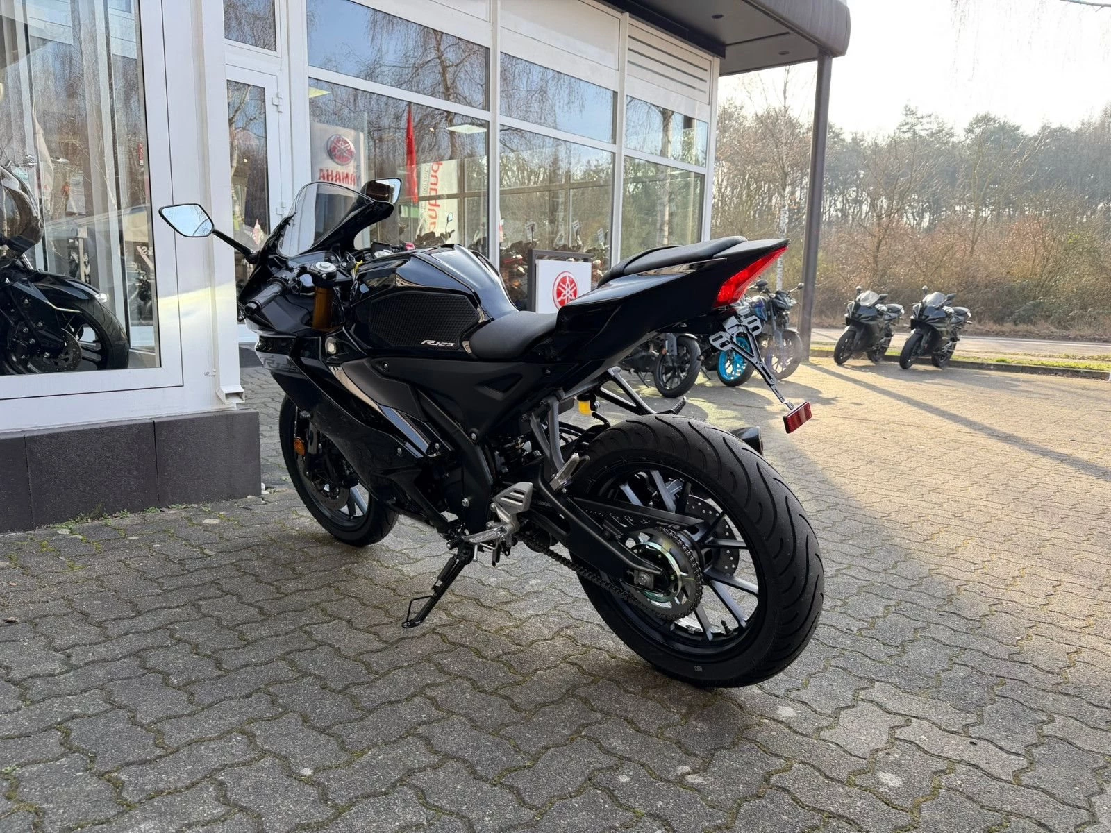 Der Deltabox-Rahmen hat eine für den Rennsport entwickelte Supersport-Geometrie und eine hochmoderne 41 mm KYB Upside-Down-Gabel sowie eine angelenkte Hinterradfederung für ein superagiles Handling. Die Anordnung der Fußrasten, der Sitzbank und des Lenkers sorgen für eine sportliche Sitzposition und für eine optimale Kontrolle. Und mit dem 5 Zoll großen TFT-Cockpit mit Smartphone-Konnektivität bleibst Du stets informiert und in Verbindung. Mit einem leistungsstarken, zentral angeordneten LED-Scheinwerfer, zwei LED-Positionsleuchten und der M-förmigen Nase spiegelt das aggressive, neue Gesicht die reine DNA der R-Serie wider.Für eine starke Leistung in allen Drehzahlbereichen ist der 125 cm Viertaktmotor mit Yamahas leistungssteigernder variabler Ventilsteuerung (VVA) und einem überarbeiteten Auspuff ausgestattet. Die Traktionskontrolle sowie die Anti-Hopping-Kupplung verbessern die Beherrschbarkeit beim Beschleunigen und Bremsen. Mit einem Premium-Finish in den neuen Graphics der nächsten Generation - zur Auswahl stehen die Farbschemata Icon Blue, Tech Black oder 70th Anniversary in Weiß und Rot - lässt dich die R125 mit ihrem neuen Look direkt in die R/World eintauchen.