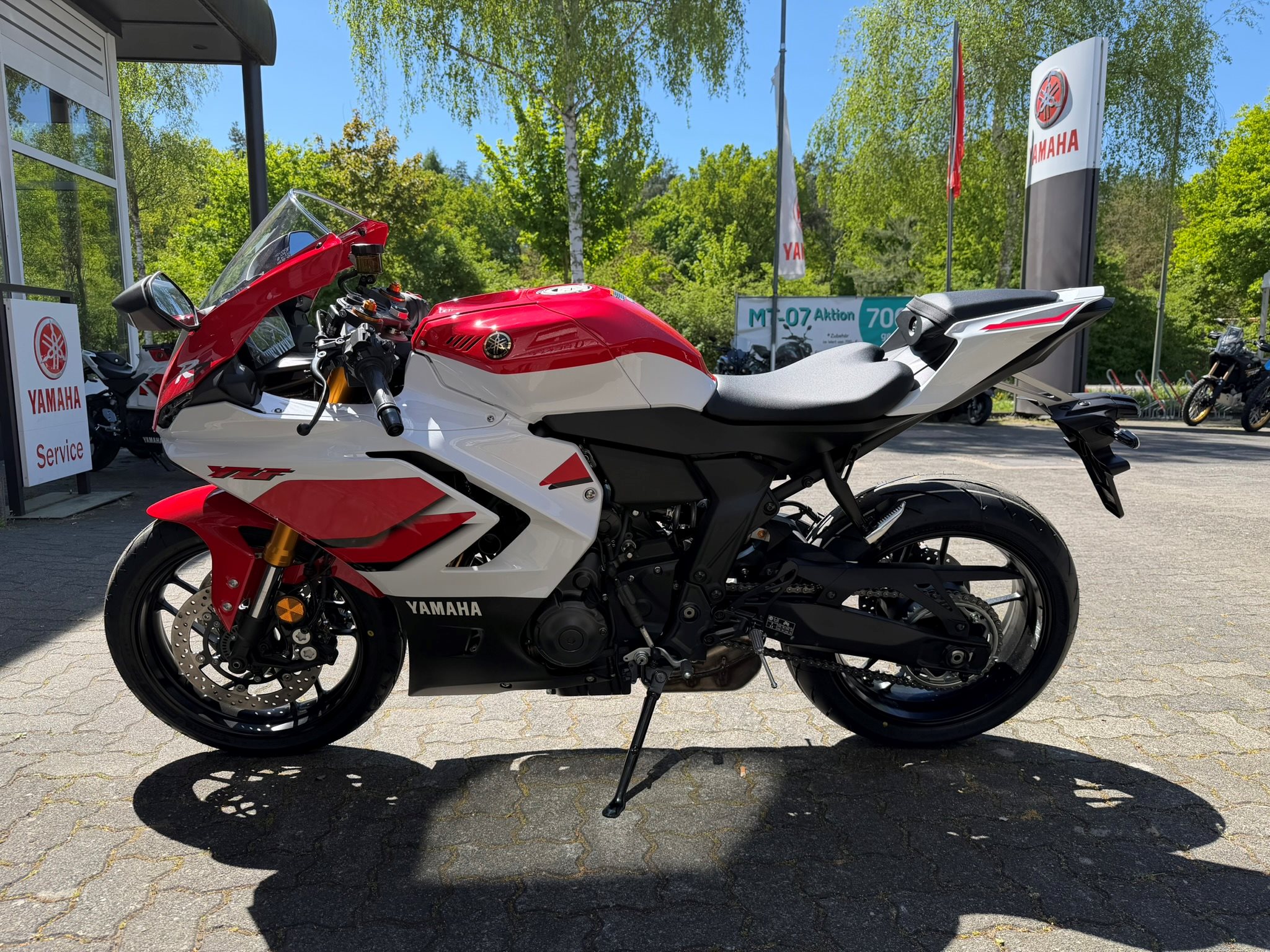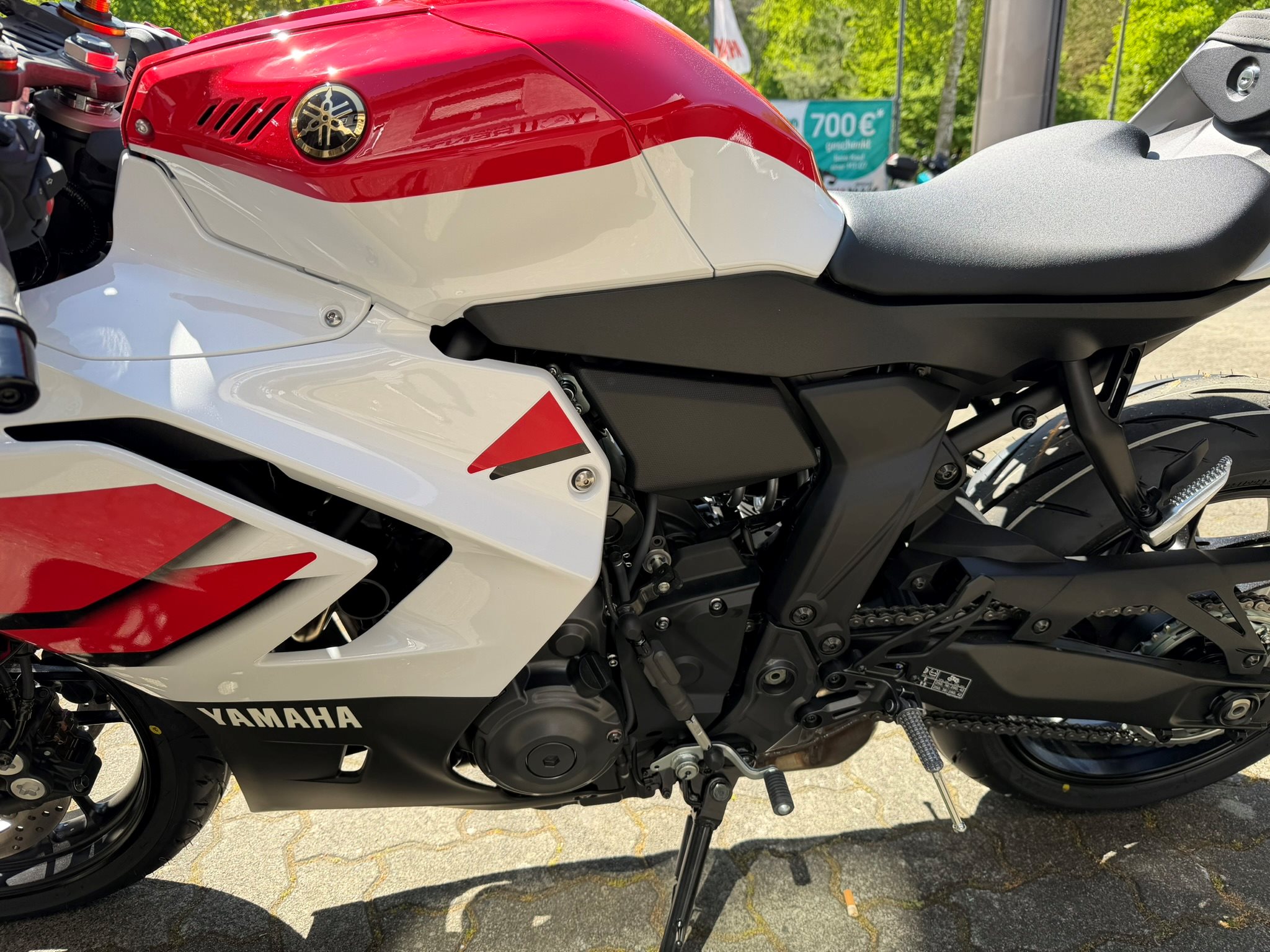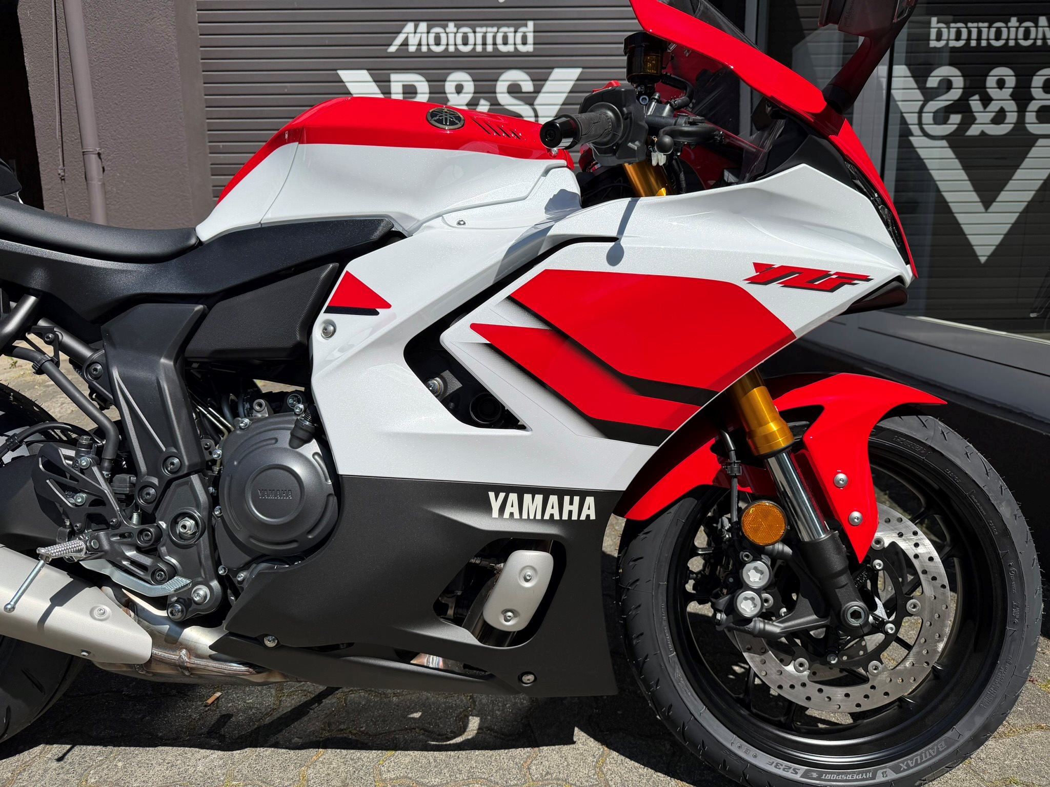 Unter Beibehaltung der unverwechselbaren DNA der Yamaha R-Serie stellt die neue R7 mit einem Design der nächsten Generation, verfeinerten Federelementen und leichten SpinForged-Rädern für ein agiles und präzises Handling eine erneute Weiterentwicklung dar. Ein Supersportler, der vom Rennsport inspiriert ist und für die reale Welt entwickelt wurde.