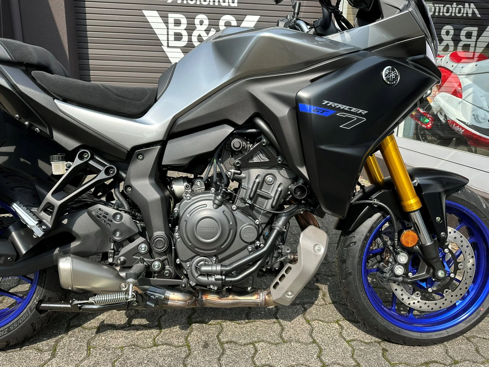 Mit der TRACER 7 GT wird das Fahren auf kurvigen Straßen zu einem aufregenden Erlebnis. Der EU5+-konforme CP2 Motor mit 690 cm Hubraum sorgt für eine starke Beschleunigung, selbst bei voller Beladung. Die Upside-Down Telegabel und das Monocross-Federbein mit Ferneinstellung für die Federvorspannung verbessern die Stabilität auf der Straße.